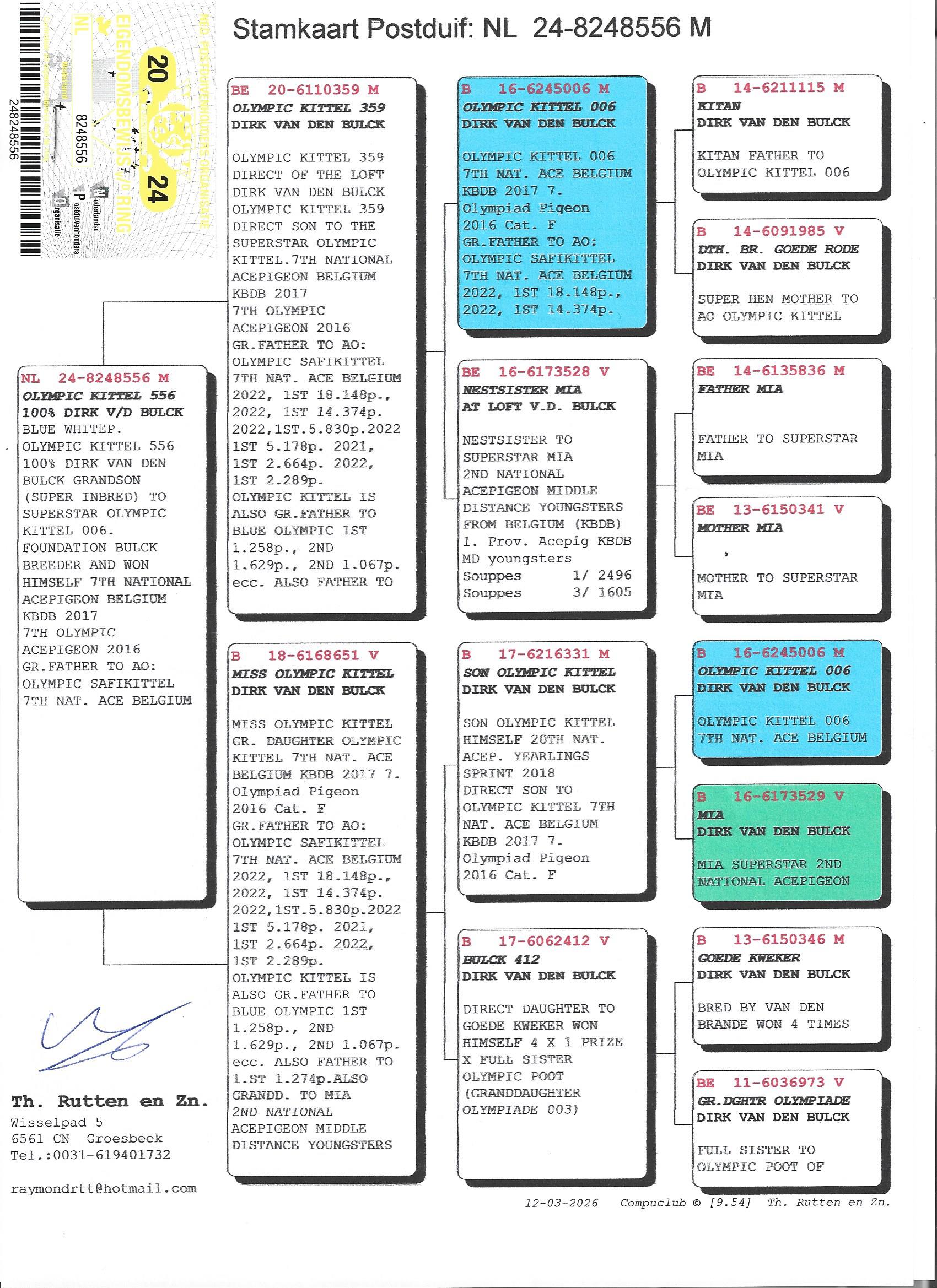 Grootvader: BE16-6245006. ‘Olympic Kittel 006’, Dirk Van den Bulck