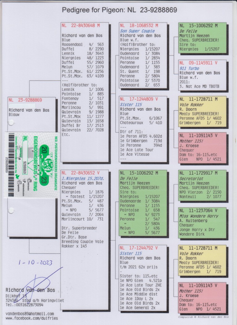 Grootmoeder: NL17-1244792. Zus ‘115’, Richard Van den Bos