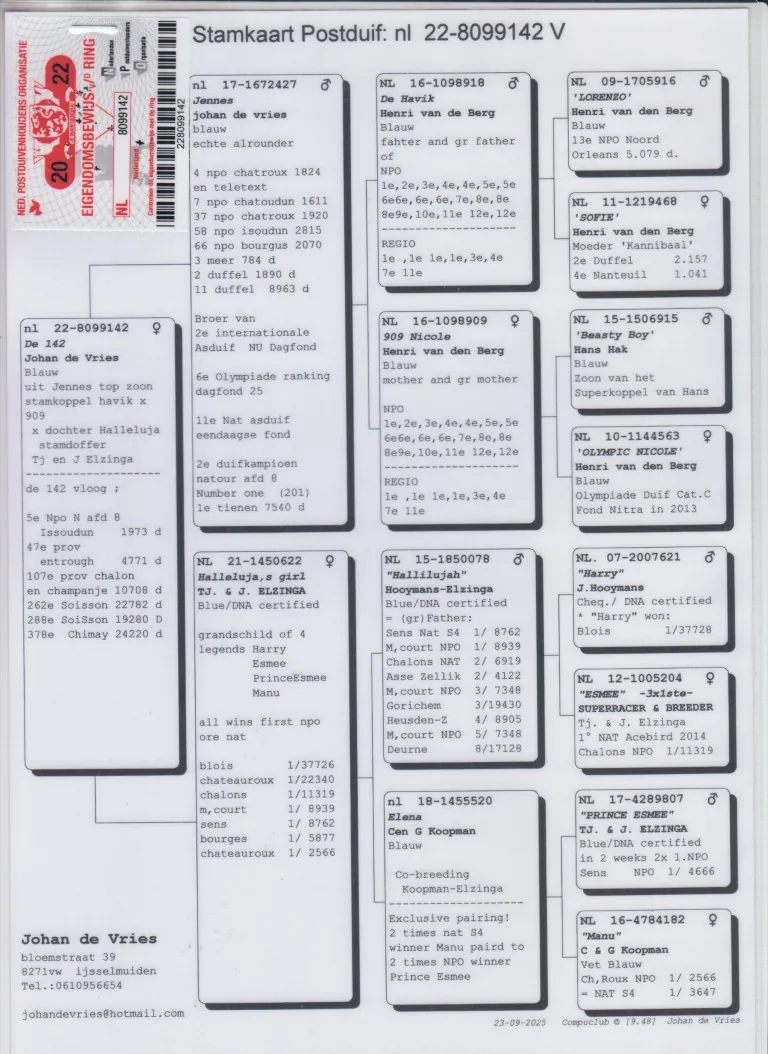 Hij komt uit de NL09-1705916. ‘Lorenzo’, Henri van den Berg.