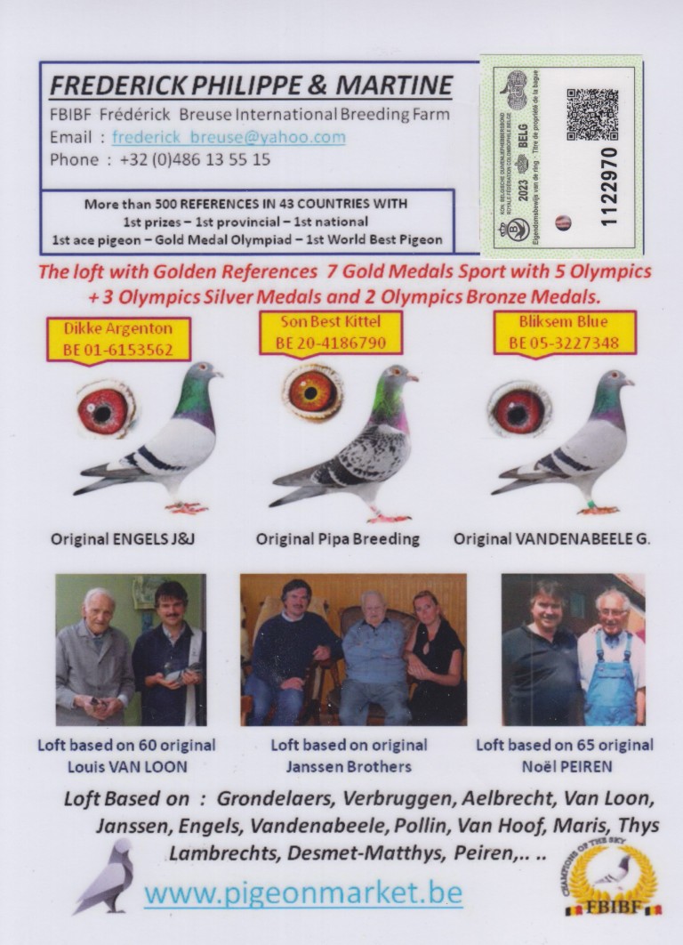 Hij komt uit BE16-4051832. Vader “Daniel”. Topkweker en vlieger.