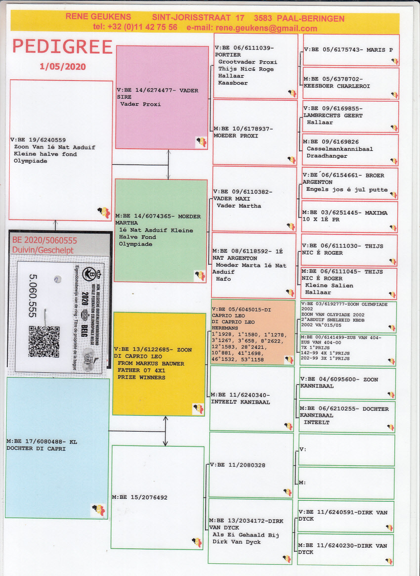Grootvader : BE13-6122685. Zoon “Di Caprio” Leo Heremans.