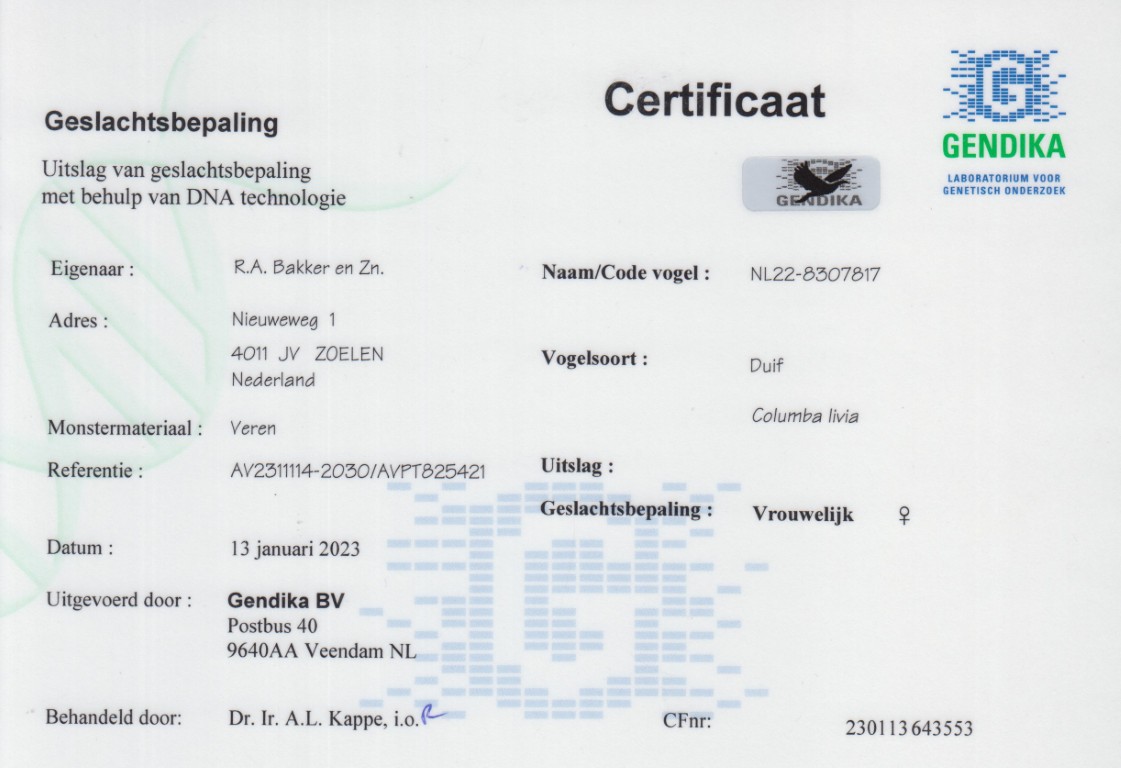 Grootmoeder: NL09-1674369. ‘NADRA’, C&G KOOPMAN