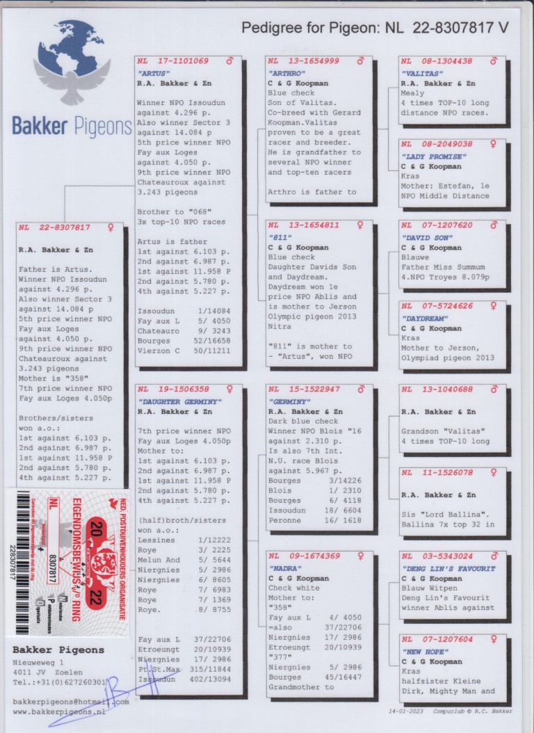 1. NPO Ablis en is moeder van ‘JERSON’ Olympiadeduif 2023 Nitra