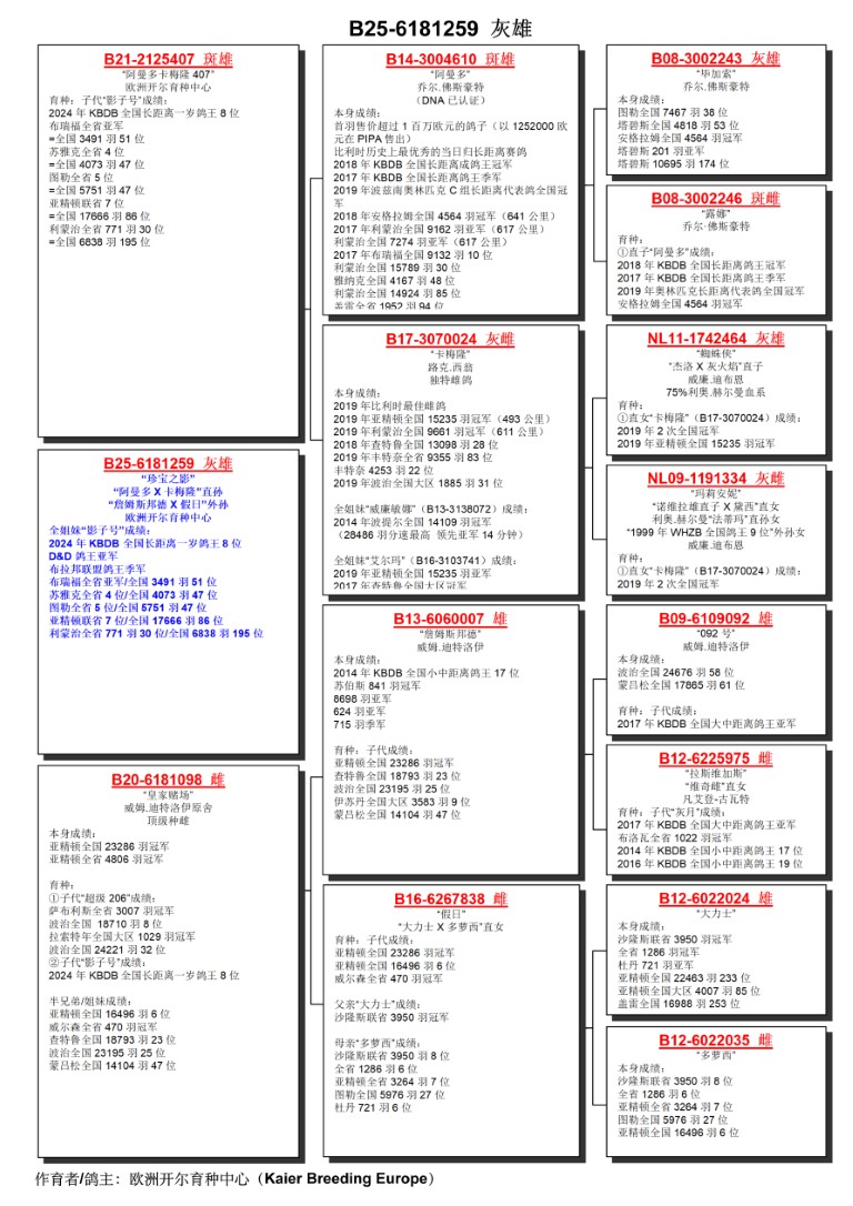 出自: ”阿曼多卡梅隆”, 作出子代 ”影子号”, KBDB全国鸽王冠军8位, 出自”阿曼多” & ”卡梅隆” x ”皇家赌场 ”, 1位全国利蒙治 23.826 羽, 作出子代 ”超级206”,萨布利斯全省3007羽冠军,波治全国 18710羽8位等等