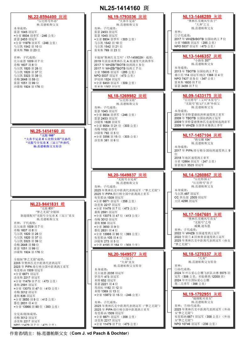 出自: ”丘比特号外孙”, 1位-2.453 羽, 1位-1.045 羽, 2位省赛 11.978 羽, 3位省赛 8.934羽, 10位-1.542 羽x ”梦之无限姐妹”, 平辈 ”梦之无限”, 奥林匹克中距离冠军, 全国中距离鸽王亚军, 1位省赛 6.671 羽, 1位-2.217 羽