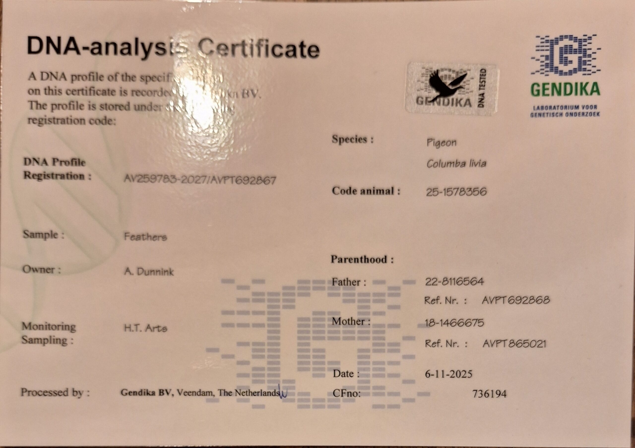 Grootmoeder: NL17-1686076. Kleindochter ‘Superboy’, DNA. Anton Ruitenberg.