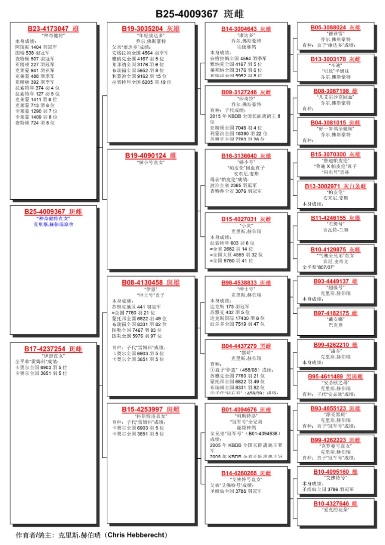 出自: ”神奇健将”, 2025年省赛鸽王2位&5位, FCI全国全能鸽王6位, 1位-1.404 羽, 1位-538 羽,