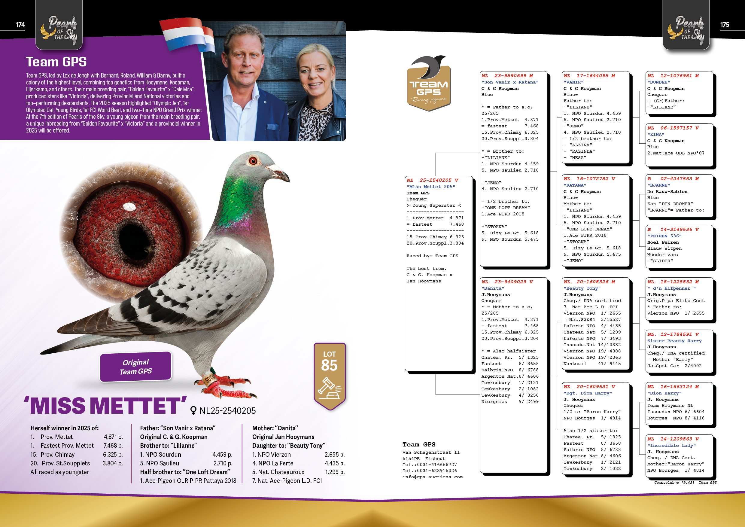 Winnares van: 1. Snelste Prov. Mettet 7.468 d., 15. Prov. Chimay 6.325 d., 20. Prov. St.Soupplets 3.804 d., uit: ”Son Vanir x Ratana”, origineel C. & G. Koopman x ”Danita”, origineel Jan Hooymans, dochter 1. NPO 2.655 d.