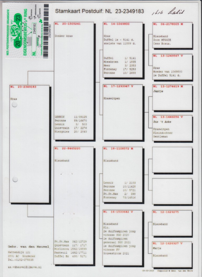 Hij komt uit de NL06-2178005. Zoon ‘Muggie’, Cees Bosua.