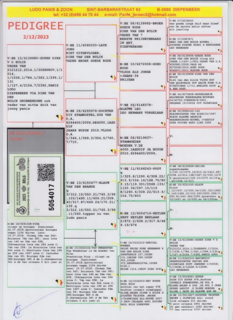 Uit: ”Super Dirk v/d Bulck”, vader 1. Prov. 3.068 d., 1.-1.014 d., 1.-1.036 d., 1.-784 d., 1.-363 d., 1.-299 d., etc. x ”Fina”, 2. Nat. Bourges, 2. Prov. Bourges 1.154 d., 3.-542 d., 7.-281 d., 1.-146 d., 5.-658 d., 1.-264 d., 7.-258 d.