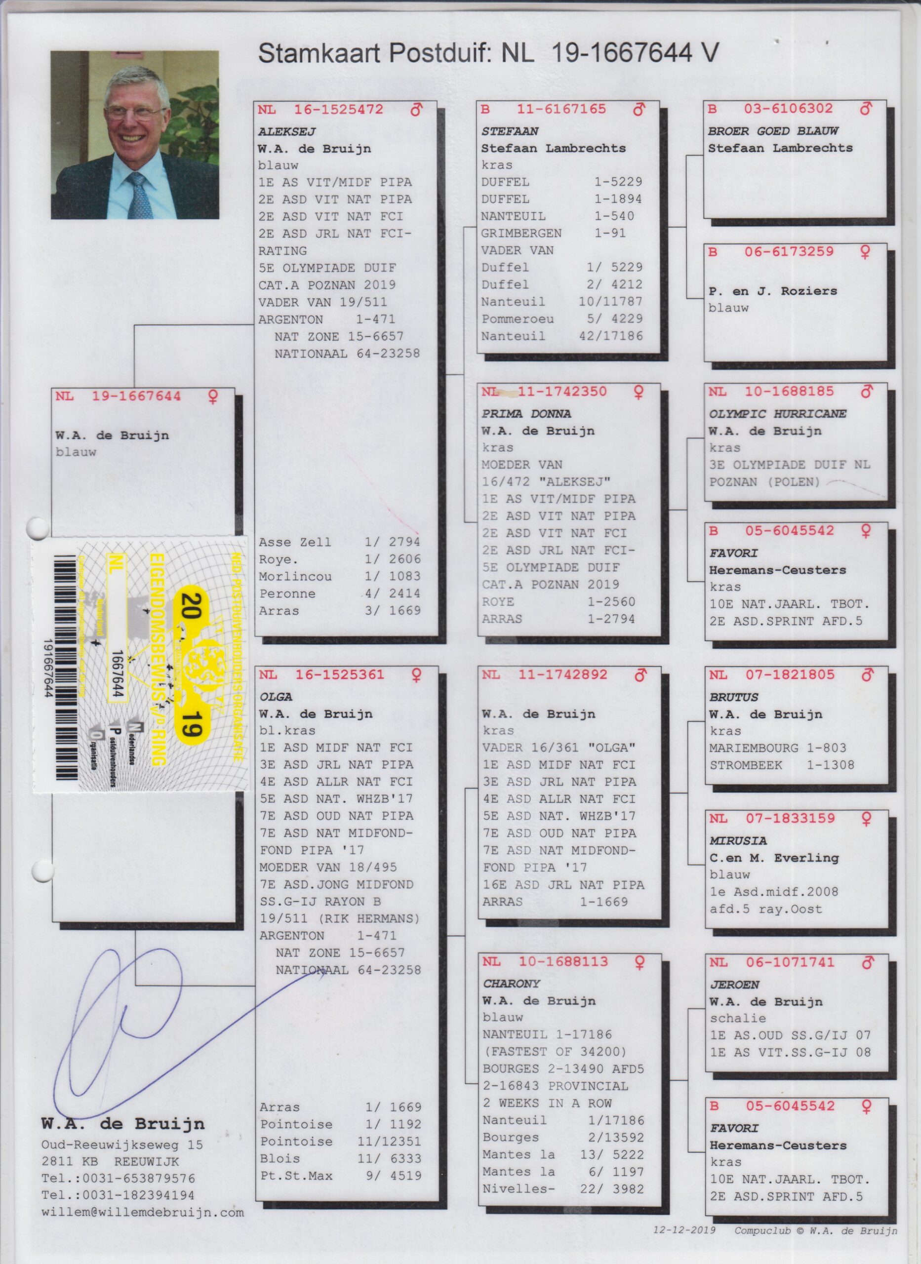 Hij komt uit de NL07-1821805 “Brutus” W.A de Bruijn.