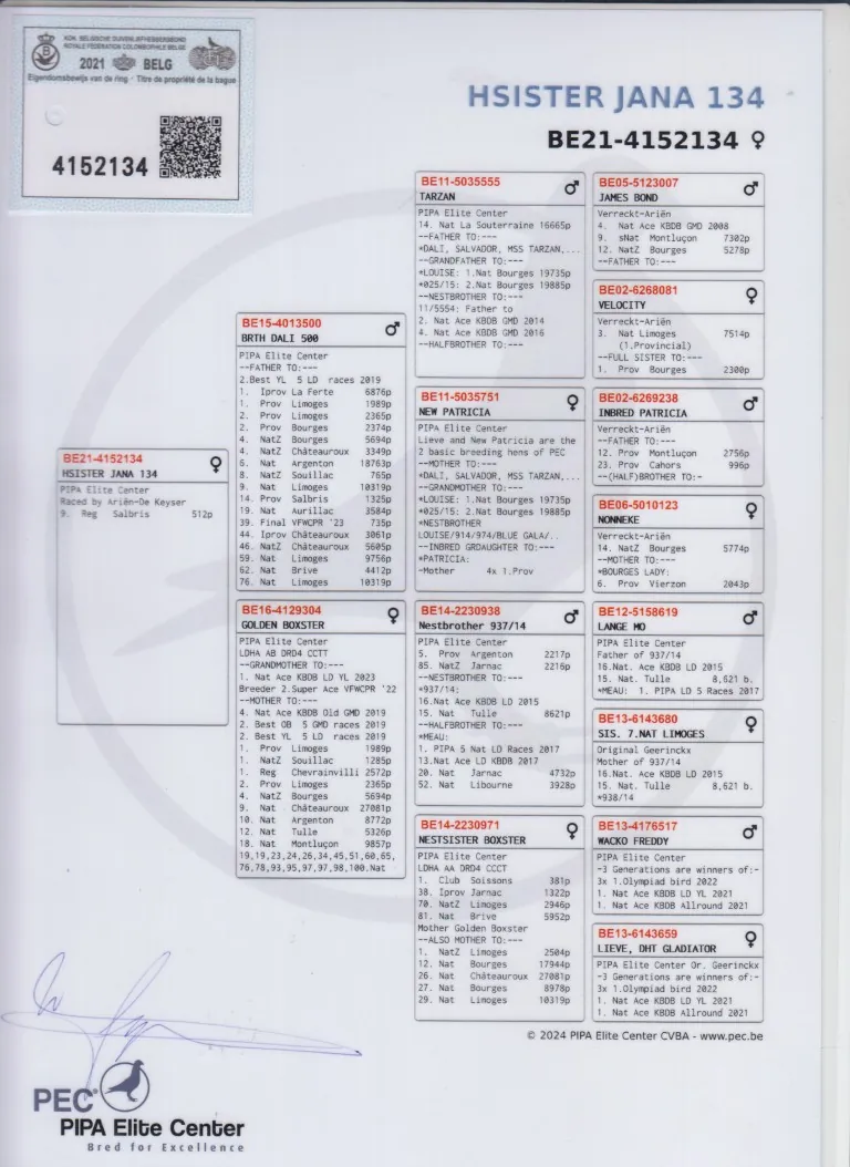 Grootvader BE14-2230938. Nestbroer “937/14”. PIPA Elite Center.