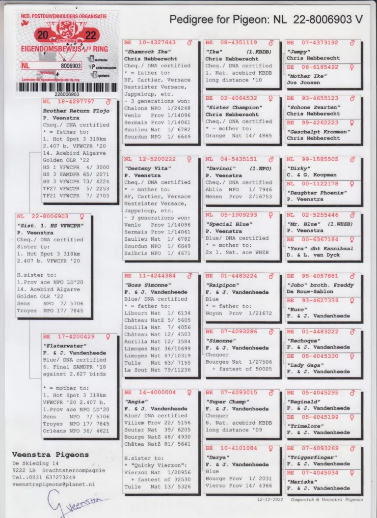 Zij komt uit BE07-4093015. “Super Champ”. F. & J. Vandenheede.