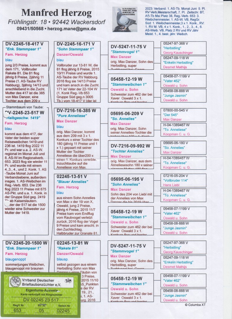 Grootvader: DV-2245-16-171. Zoon stamkoppel 1, Danzer/Oswald