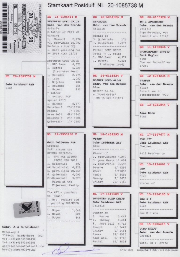 Grootvader: B12-6054326. ‘El-Zarka’, Gebr. Van den Brande.