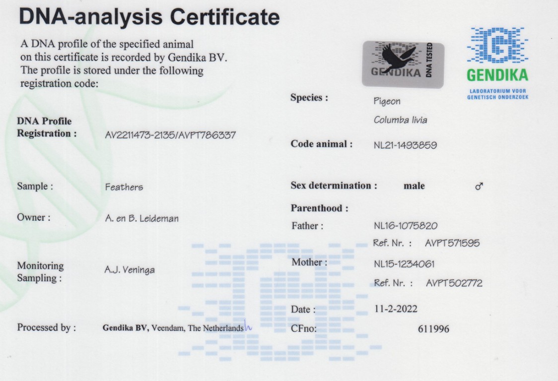 Vader ‘269’ won o.a. 1. Olympiadeduif (Germany) Nitra 2012 Cat. H.