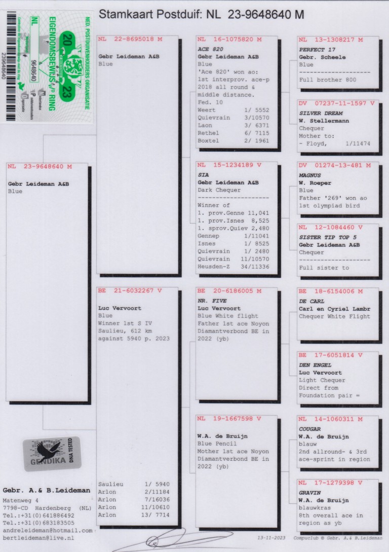 Grootvader: NL16-1075820. ‘Ace 820’, Gebr. A. & B. Leideman.