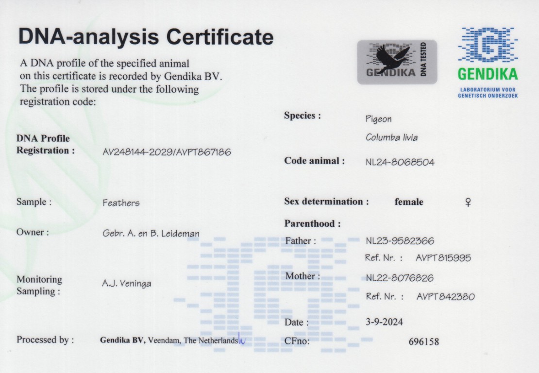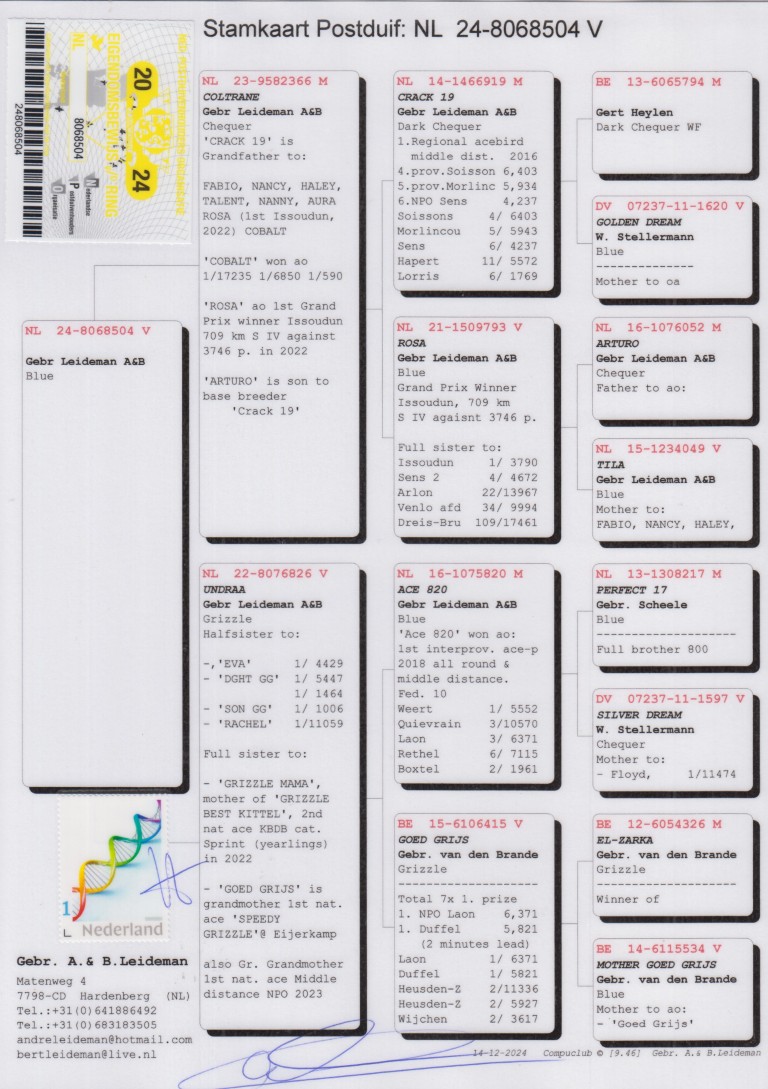 Grootvader: NL16-1075820. ‘Ace 820’, Gebr. A. & B. Leideman.