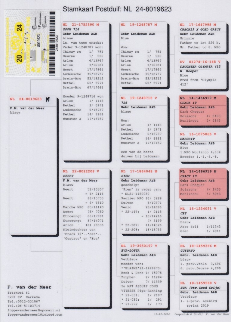 Hij komt uit de NL14-1466919. ‘Crack 19’, Gebr. A. & B. Leideman.