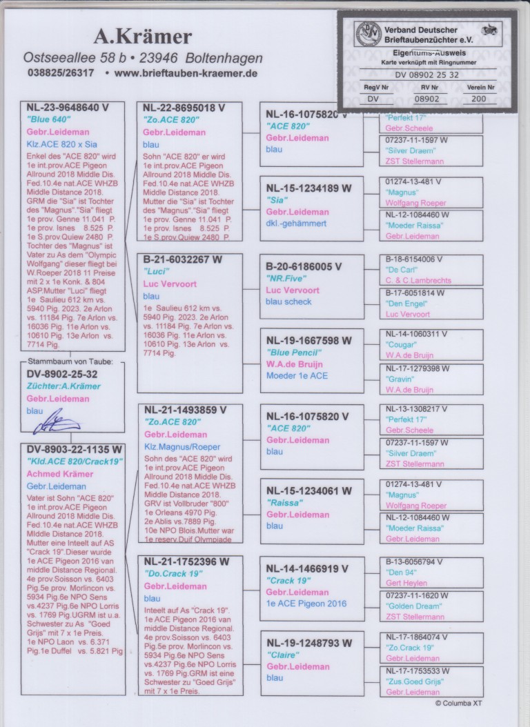 Moeder: 08903-22-1135. Kleindochter ‘Ace 820/Crack 19’, Achmed Kramer. Gebr. Leideman.