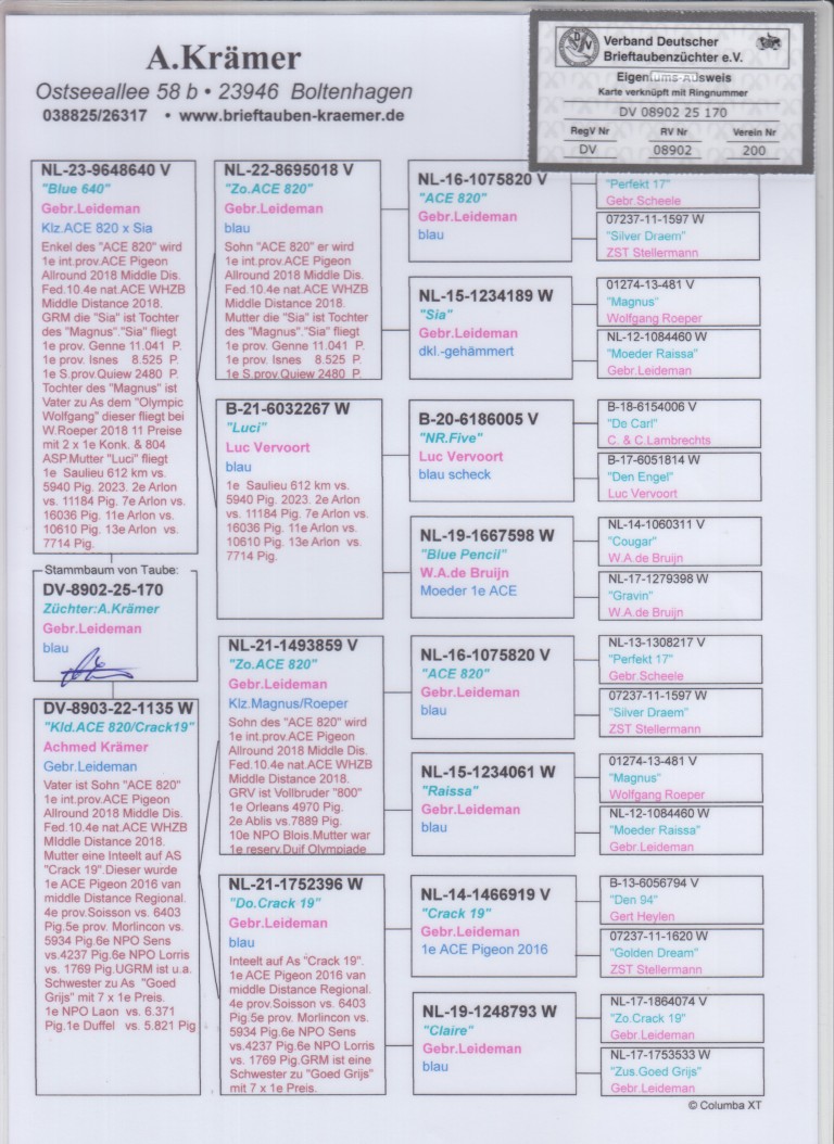 Moeder: 08903-22-1135. Kleindochter ‘Ace 820/Crack 19’, Achmed Kramer. Gebr. Leideman.