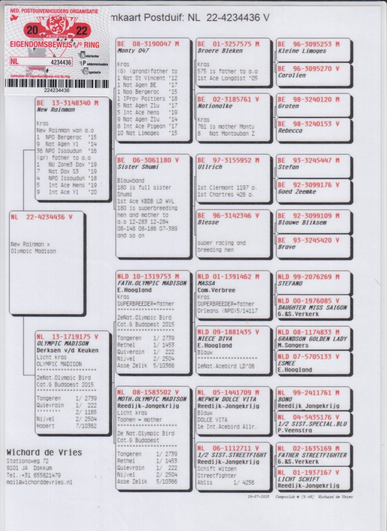 Grootvader NL10-1319753. Vader “Olympic Madison”. E. Hoogland.