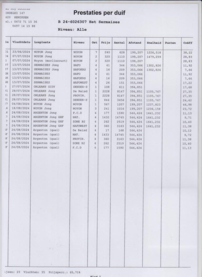 Kleinzoon van de ‘309’, nestzus van de ‘Crack 308’, deze wint 1. Nat. Cahors 2005 en is 1. Nat. Asduif Eric Limbourg.