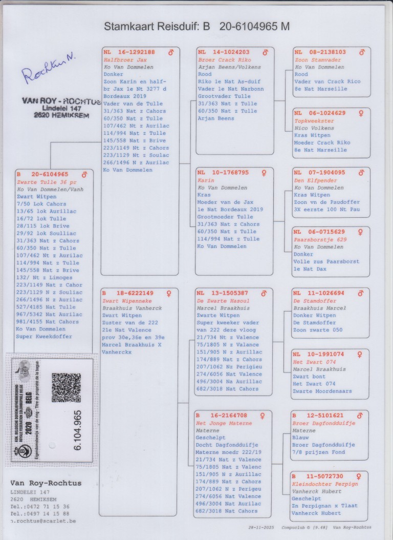 Zuster van de ‘222’, 21. Nat. Valence Prov. 30, 36, en 39. Marcel Braakhuis x Vanherckx.