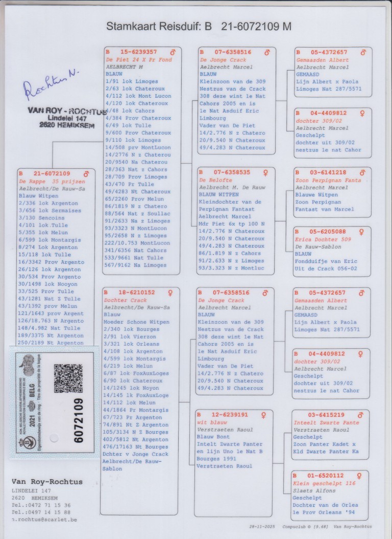 Moeder: B18-6210152. Dochter ‘Crack’, Aelbrecht-De Rauw-Sablon.
