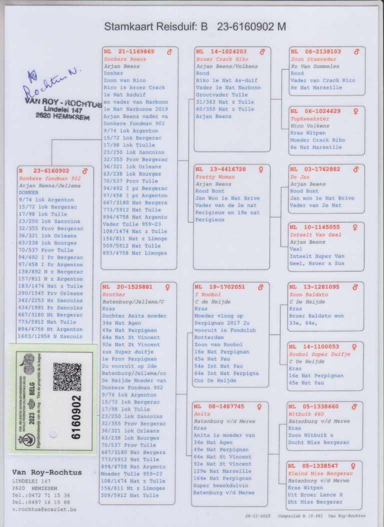 X de NL14-1100053. ‘Roobol Super Duifje’, C. de Heijde.
