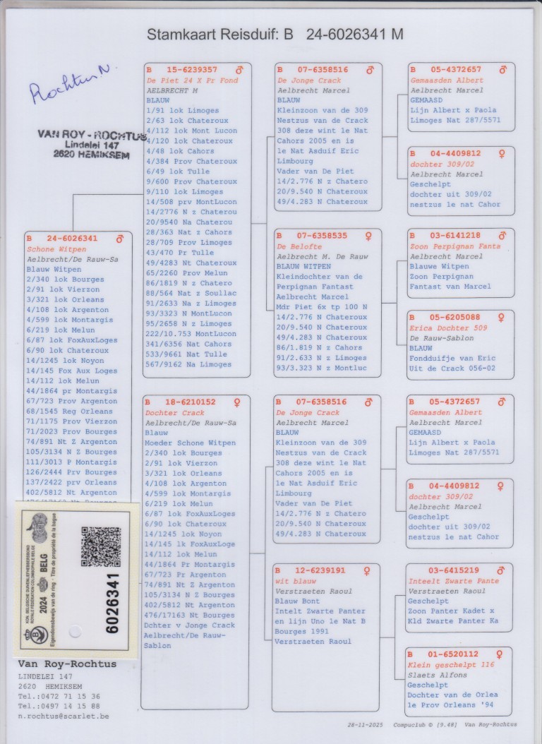 Zij komt uit de B03-6141218. Zoon ‘Perpignan Fantast’, Marcel Aelbrecht.