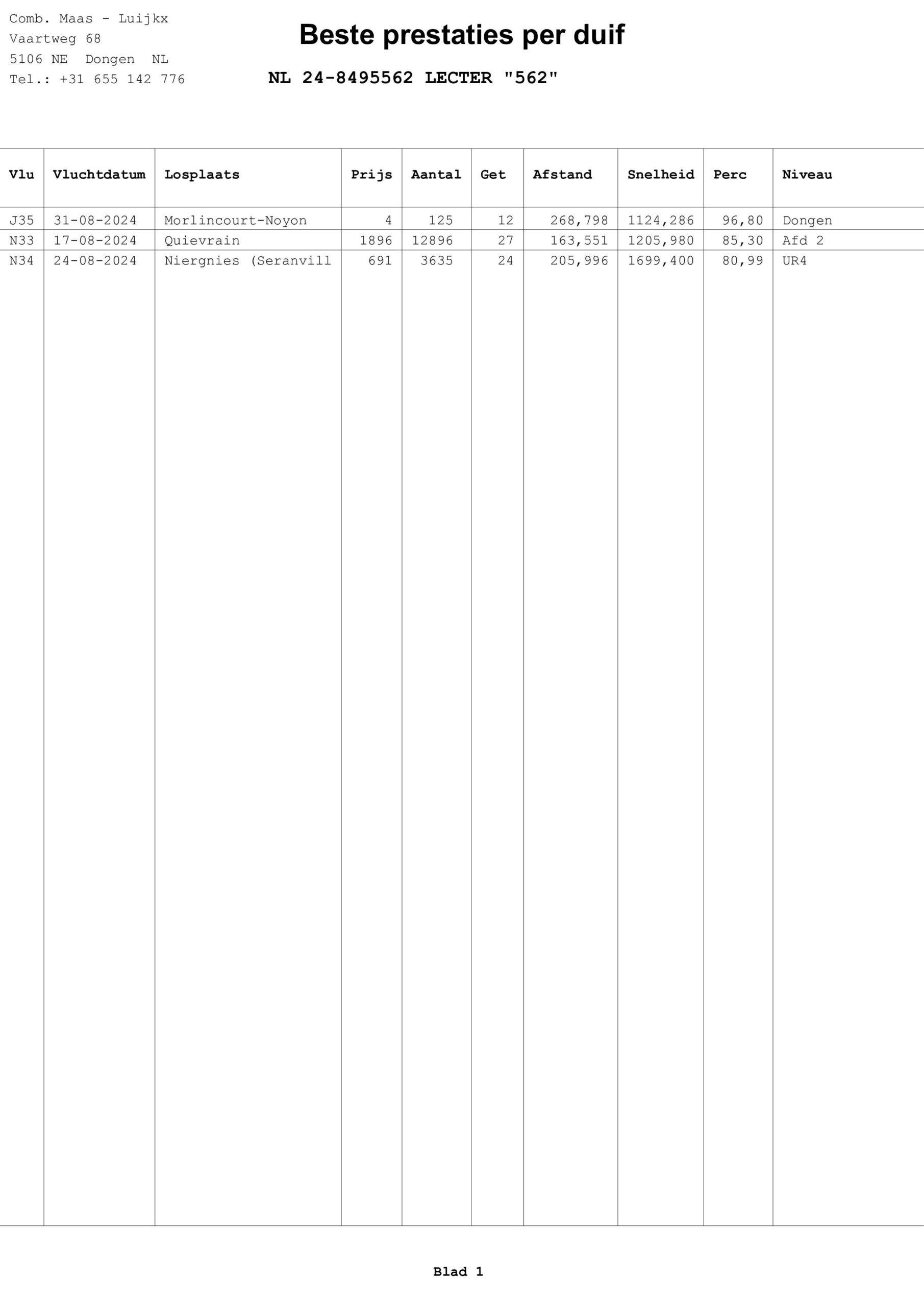 Hij komt uit de B11-9013112. Zoon ‘Olympic Rocky’, Anthony Maes. Supervlieger.