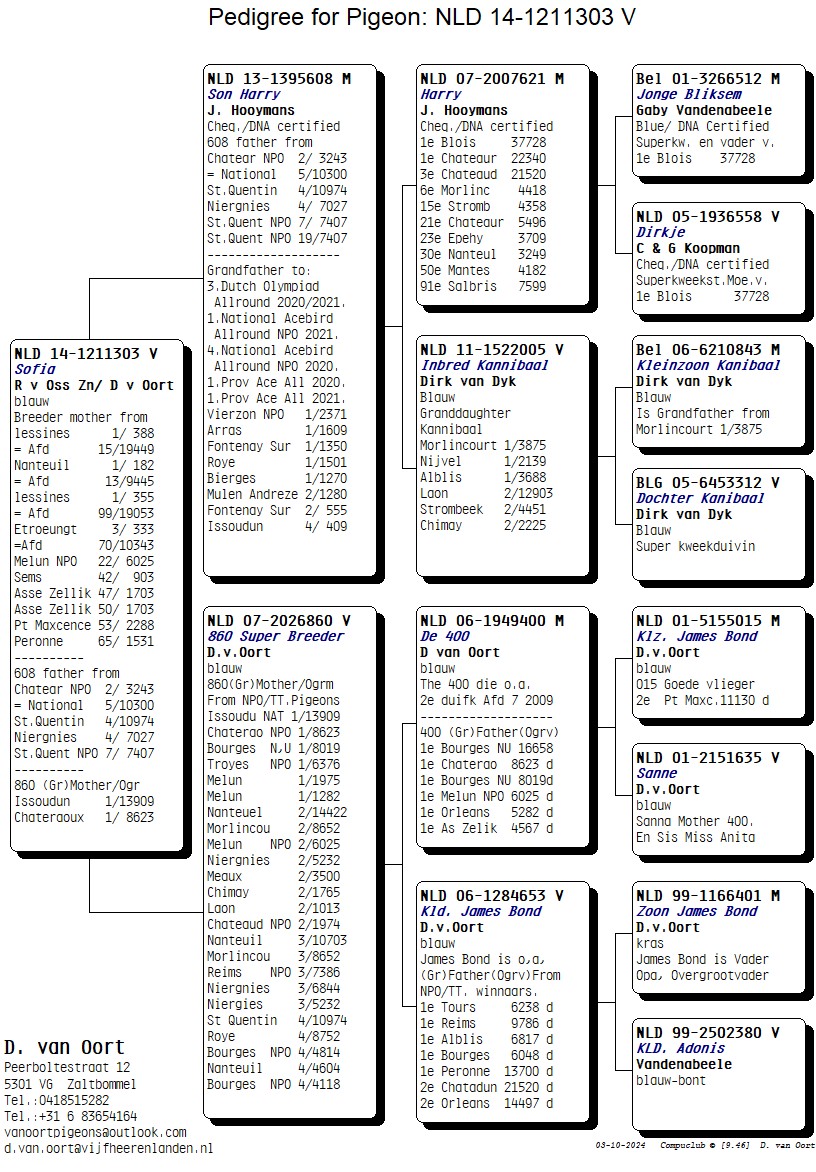 Grootmoeder: NL06-1284653. Kleindochter ‘James Bond’, D. v. Oort.
