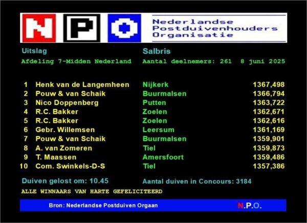 Niet alleen op eigen hok wordt er gepresteerd met deze duiven!!