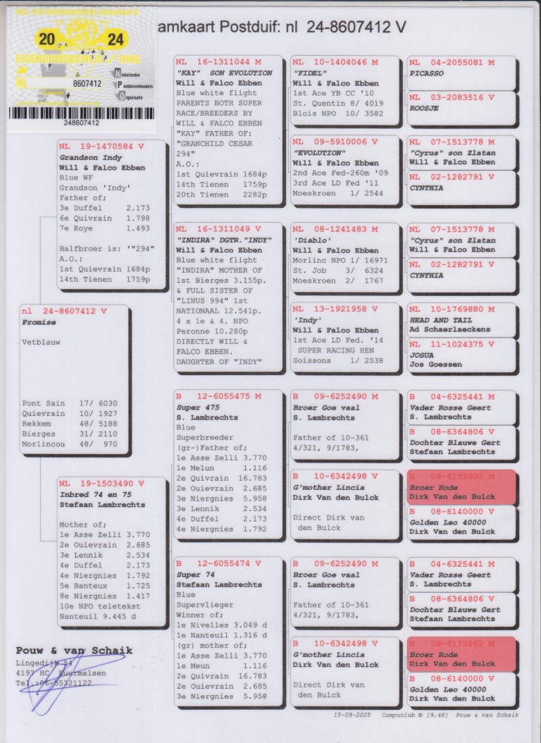 Ouders zijn beide super vliegers en kwekers bij Will & Falco Ebben.