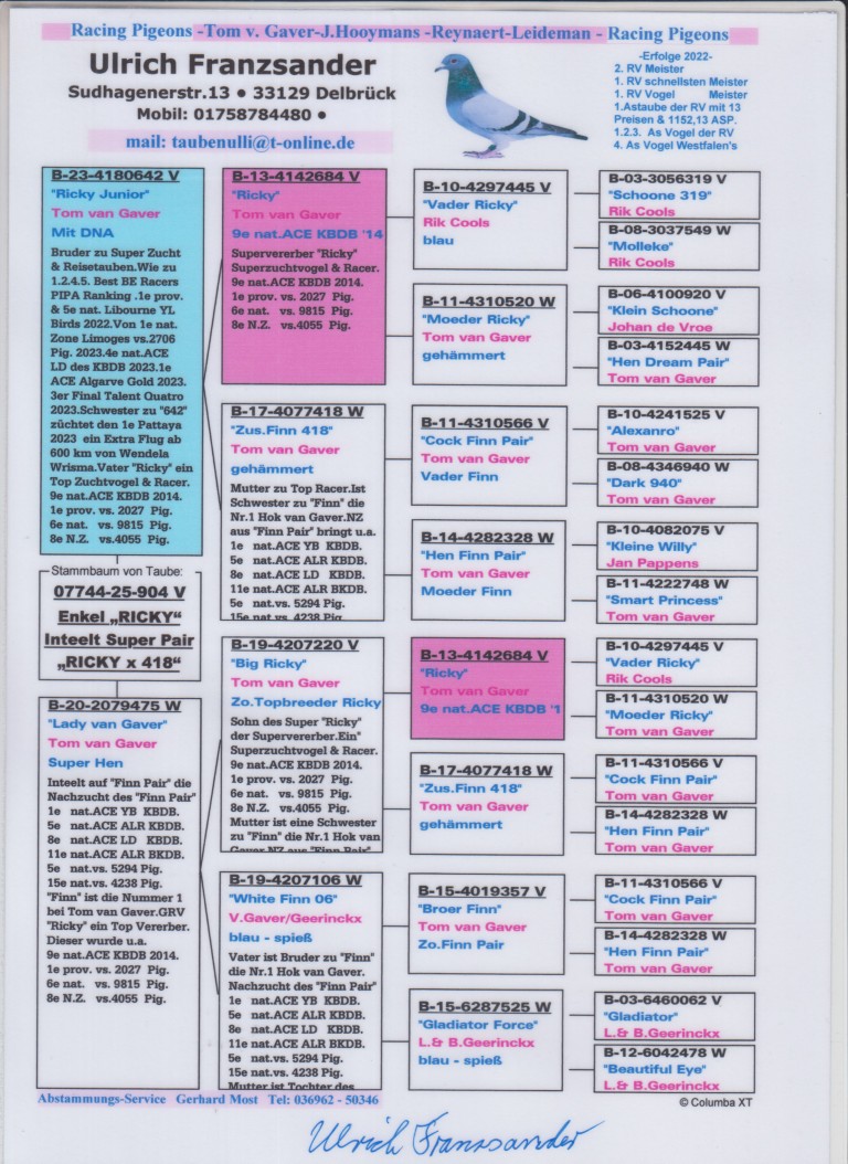 Grootvader: B13-4142684. ‘Ricky’, Tom van Gaver.