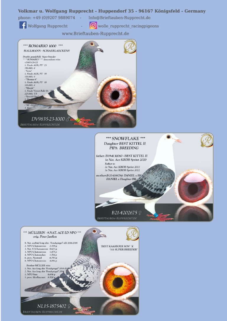 Uit: “Romario 1000”, uit zoon “Romario & Sindy” & dochter “Romario & Cinedu” x “Snowflake BK II”, dochter “Best Kittel II”, 1. Nat. KBDB & dochter “Daniel”, 1. Nat. Asduif KBDB !!!!!!!!!!!!!