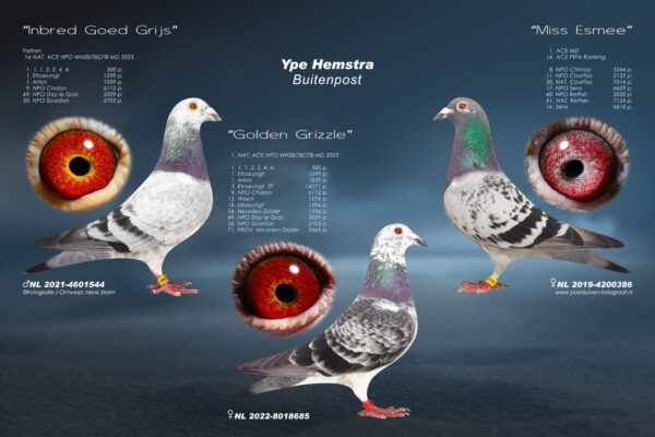 Deze prestaties zijn mede voortgekomen, uit dezelfde lijnen als hier in deze veiling worden aangeboden en dit zijn de lijnen die “hot” zijn op dit moment. Alle topduiven van de Gebr. Leideman & PIPA Breeding komen voorbij te weten; “Goed Grijs”, “Crack 19”, “Best Kittel”, “Grizzle Best Kittel”, “Blue Best Kittel” en ga zo maar door…..