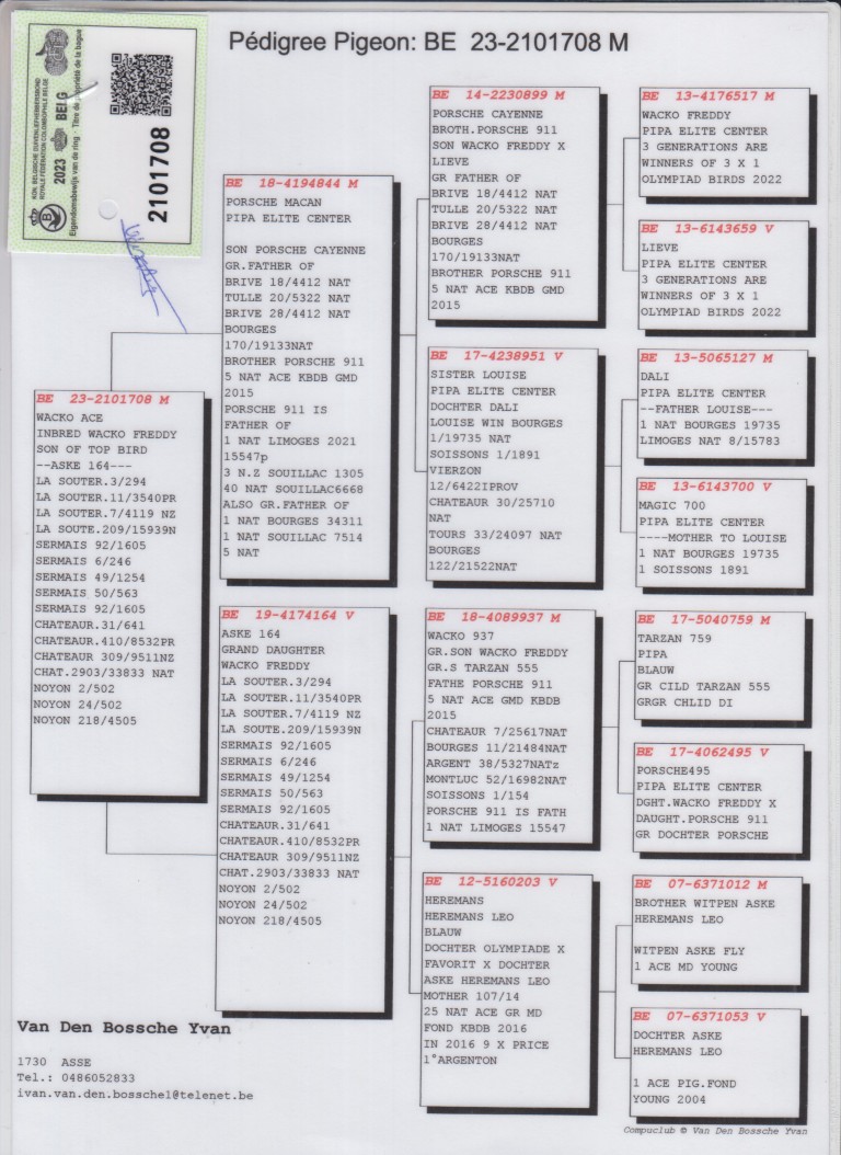 Grootvader: B18-4089937. ‘Wacko 937’, Kleinzoon ‘Wacko Freddy’.