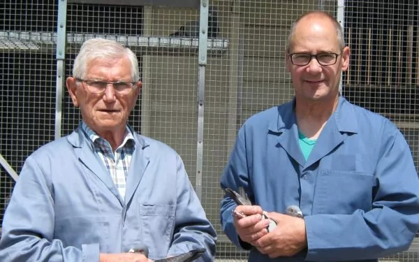 Gebr. Van den Brande, Pure Speed Legacy Wie het over snelheid heeft in provincie Antwerpen, kan niet om Gebr. Van den Brande heen. Jarenlang waren Frans en Marcel, samen met Carl, dé te kloppen combinatie in het ijzersterke Diamantverbond. Vluchten uit Quiévrain en Noyon? Daar stonden ze week na week bovenaan. In één van de sterkste snelheidsregio’s van België verzamelden ze kampioenschapstitels alsof het vanzelfsprekend was. Zowel in Berlaar als in het Diamantverbond en later ook in Langs De Nete (Bevel) bewezen ze dat hun systeem en hun duiven simpelweg beter waren. Pure snelheid en constante kopprijzen. Vandaag de dag zijn ze gestopt met de actieve duivensport, maar hun naam leeft sterker dan ooit voort. Hun absolute toplijn, met als boegbeeld ‘Goed Grijs’, wordt vandaag wereldwijd verder gezet. Via onder andere Gebr. Leideman verovert deze lijn momenteel de internationale duivensport, met topprestaties op het hoogste niveau. Wat hier wordt aangeboden is dus geen gewone snelheidscultuur maar een unieke groep duiven!范登布兰德兄弟,纯粹速度的传承 在安特卫普省谈论速度时,范登布兰德兄弟的名字必不可少。多年来,弗朗斯、马塞尔与卡尔组成的铁三角,始终是钻石联盟中不可撼动的王者组合。无论是奎夫兰还是努瓦永的赛场,他们周复一周稳居榜首。 在比利时最强的速度赛区之一,他们轻松摘得冠军头衔。无论是在贝拉尔、钻石联盟,还是后来在兰斯德内特(贝弗尔),他们都证明了自己的体系和鸽子更胜一筹。纯粹的速度和稳定的冠军成绩。 如今,他们已退出活跃的赛鸽运动,但他们的名字却比以往更响亮。以“好花”为代表的顶级血统,如今仍在全球延续。通过莱德曼兄弟等人的努力,该血统目前正在国际赛鸽界大放异彩,在最高水平上取得卓越成绩。